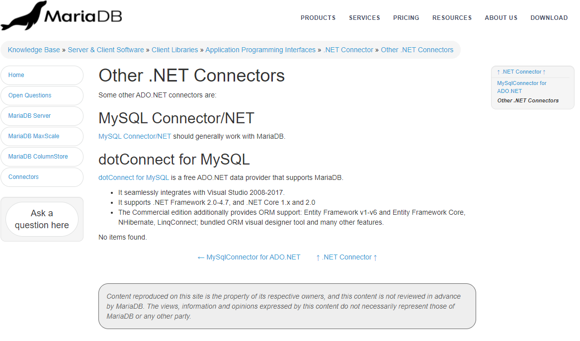 그렇다면 외부 라이브러리를 사용해야 하는데 MariaDB 홈페이지에 들어가면 C# 라이브러리 파일이 있습니다.