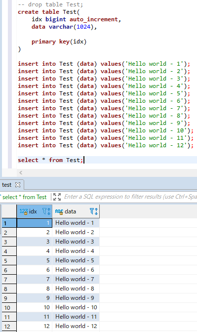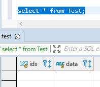 위처럼 데이터 베이스에 테이블을 만들고 간단한 데이터를 입력했습니다.