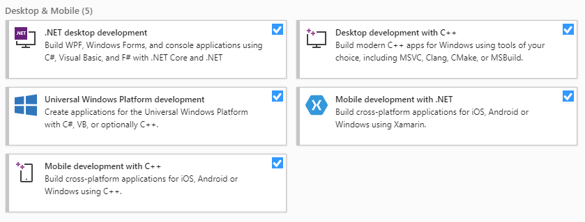 그리고 Visual Studio를 설치할 때나 혹은 이미 설치되어 있는 경우는 Installer를 통해서 cross-platform에 대해서도 같이 설치합니다.