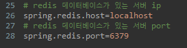 소스 설정이 완료되었으면 application.properties에 Redis 데이터베이스 정보를 설정합니다.