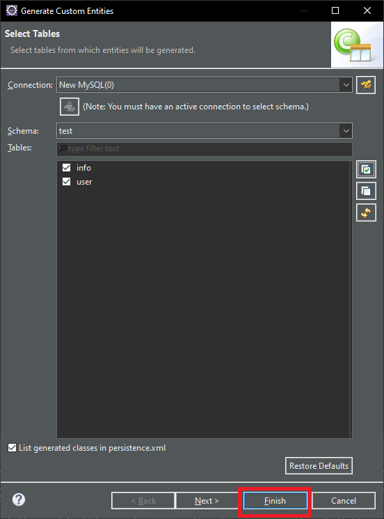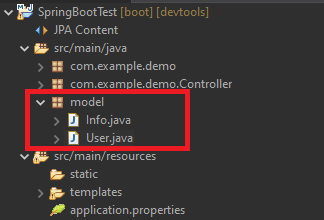 클래스를 생성을 하면 model.entity 클래스가 만들어 지는 것을 확인할 수 있습니다.