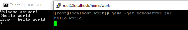 로컬에서 텔넷으로 Putty로 만든 세션에서 echo 서버를 기동하니 서로 통신이 되는 것을 확인할 수 있습니다.