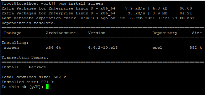 먼저 yum을 이용해서 screen을 설치하겠습니다.