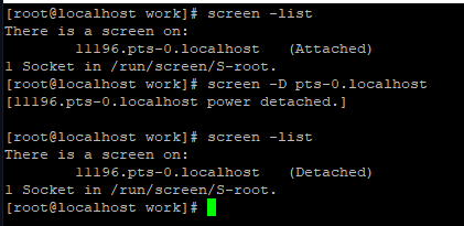 즉, pts-0.localhost의 이름으로 접속이 된 것입니다. 그 뒤의 괄호 안에 Attached의 표시는 다른 터미널에서 현재 screen에 접속 중이라는 표시집니다.