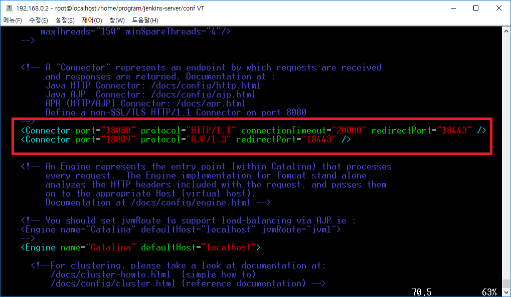 먼저 tomcat에는 http포트로 브라우져와 http통신하는 영역도 있지만 ajp 프로토콜이라고 apache와 통신하는 포트가 있습니다. apache와 tomcat을 연동하기 위해서는 ajp 프로토콜을 이용하겠습니다.