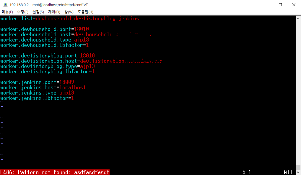 그리고 나서 workers.properties를 만듭니다. 저의 경우에는 jankins와 웹 서버가 두 개가 있기 때문에 두 개를 설정했습니다.
