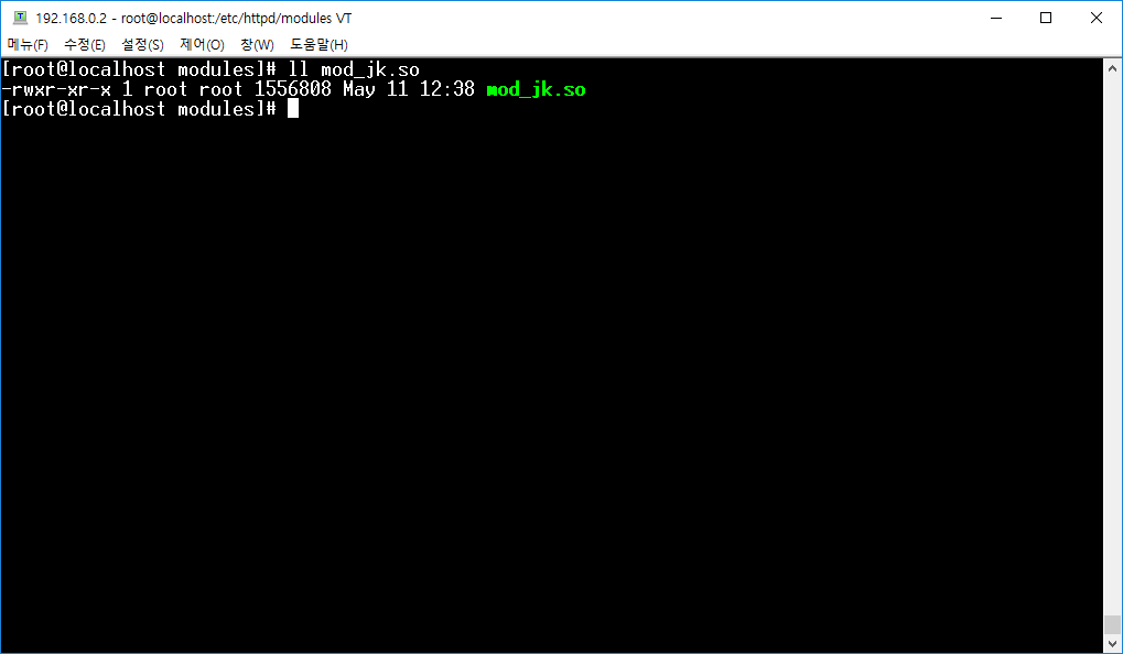 「/etc/httpd/modules」폴더에서 mod_jk.so 파일을 보면 컴파일이 잘 되었다는 걸 확인할 수 있습니다.