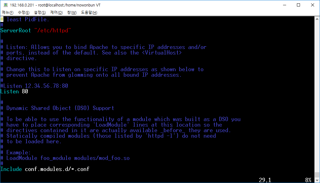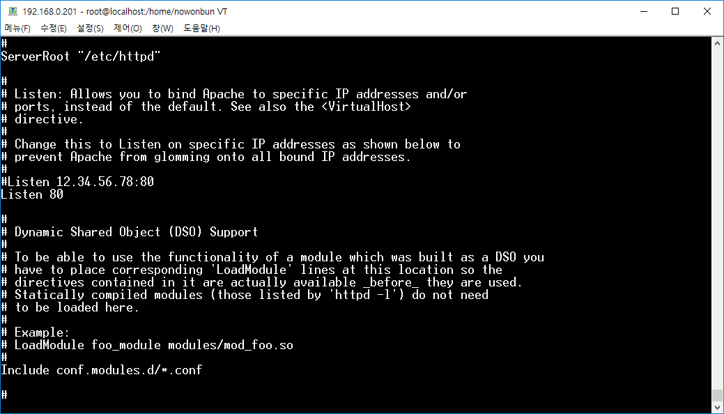 vi 편집기와 vim 편집기를 http.conf 파일로 열어서 어떤 점이 다른지 확인해 보겠습니다.