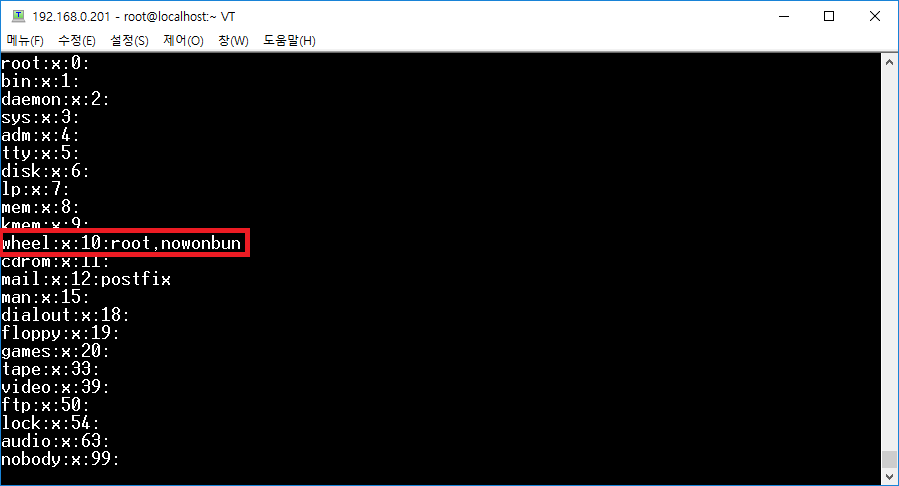 그리고 생성한 유저를 wheel 그룹에 추가합니다.