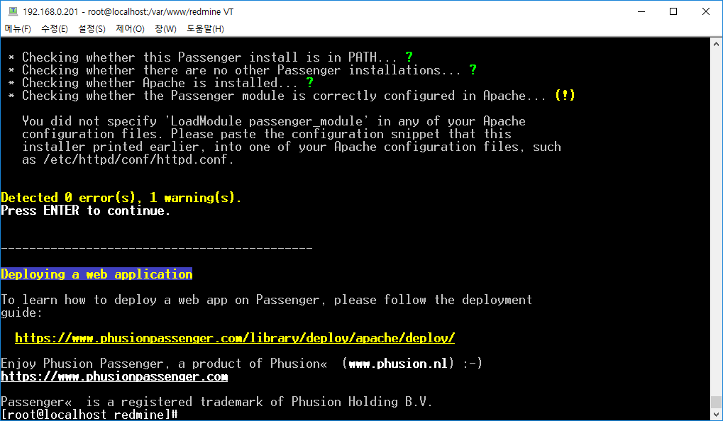 친절하게 설치 방법까지 표시해서 나옵니다. 그래서 지시대로 설치하고 다시 passenger 설치를 하겠습니다.