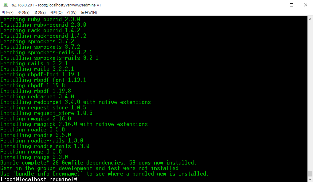 그런 다음 레드마인 번들 설치하겠습니다.