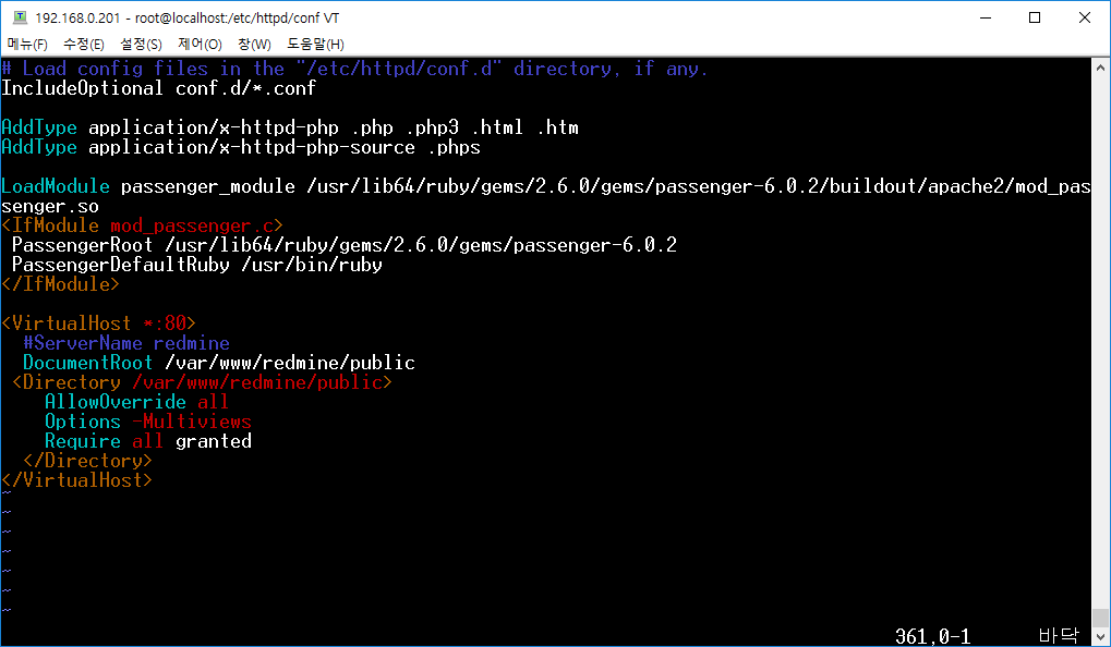 다음은 아파치 설정을 하겠습니다. 하단에 다음 설정을 추가합니다.