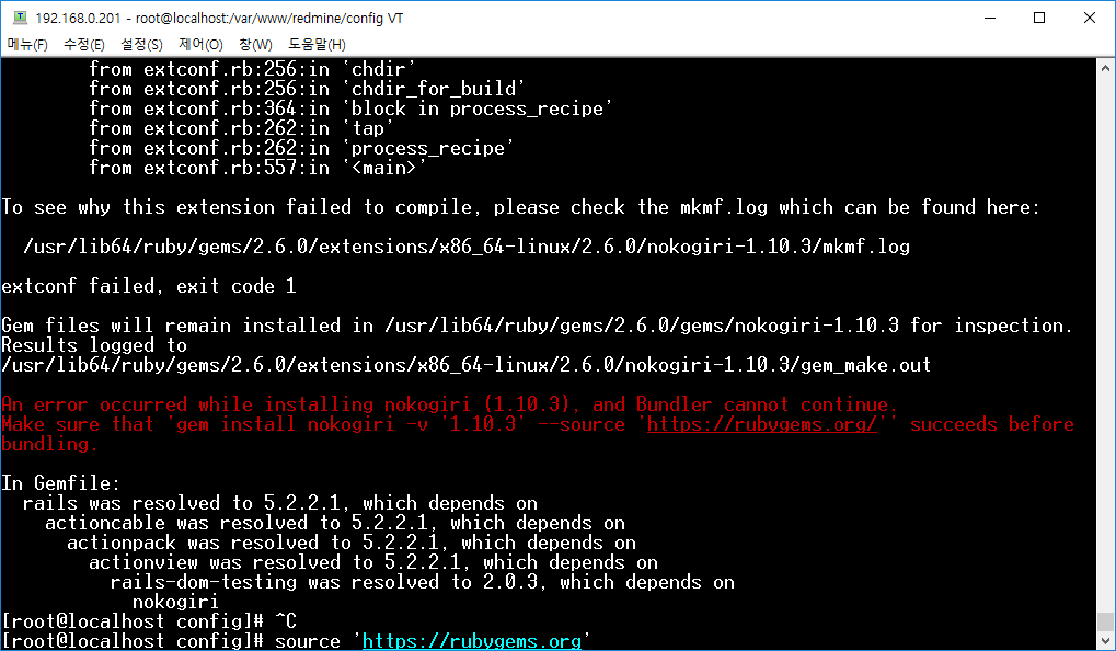 그러나 저는 bundle 실행 중에 아래와 같은 에러가 발생합니다. 후.. 레드마인 설치하면서 항목 하나하나가 다 걸립니다. ㅜㅜ