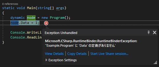 제대로 실행이 되네요.. dynamic 키워드는 일단 debug 환경에서의 에러는 잡아주지 않습니다.