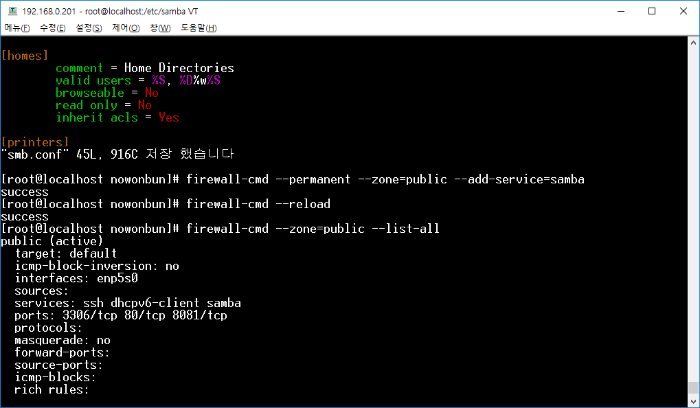해제가 된 것 같네요. 다음은 공유 폴더를 만들고 삼바 설정을 하겠습니다.