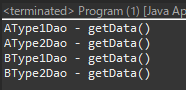 // 여기서 다시 getType 함수를 통해서 AType1Dao 클래스의 인스턴스를 받고 getData() 함수를 콘솔에 출력
