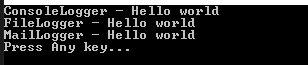 내용은 제가 LoggerManager에 ConsoleLogger와 FileLogger의 인스턴스를 넣었습니다. 그리고 write 함수를 호출하니 순서대로 콘솔에 출력이 되네요.