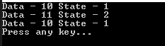 Console.WriteLine("Data - " + Data + " State - " + State);