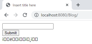 결과를 보시면 예상되는 것은 submit 버튼 밑에 안녕하세요라는 데이터가 표시되기를 예상했으나 문자 깨짐으로 무슨 글자인지 알 수가 없는 문자가 되었네요.